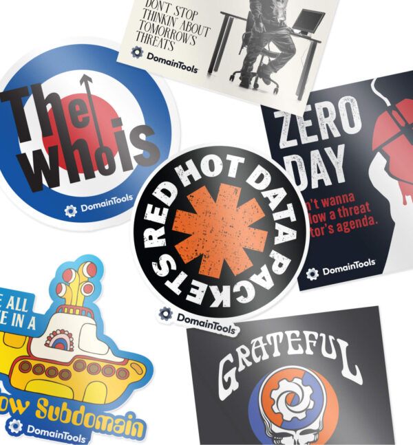 A love letter to iconic band tees, remixed for threat intelligence fans. This DomainTools sticker pack pulls inspiration from classic music culture and gives it a security-world twist, blending attitude, nostalgia, and a little edge. Designed for laptops, notebooks, and anywhere you want to quietly signal your taste in both music and data, these stickers celebrate thinking ahead, questioning everything, and never following someone else’s agenda. Collect them, trade them, slap them proudly.